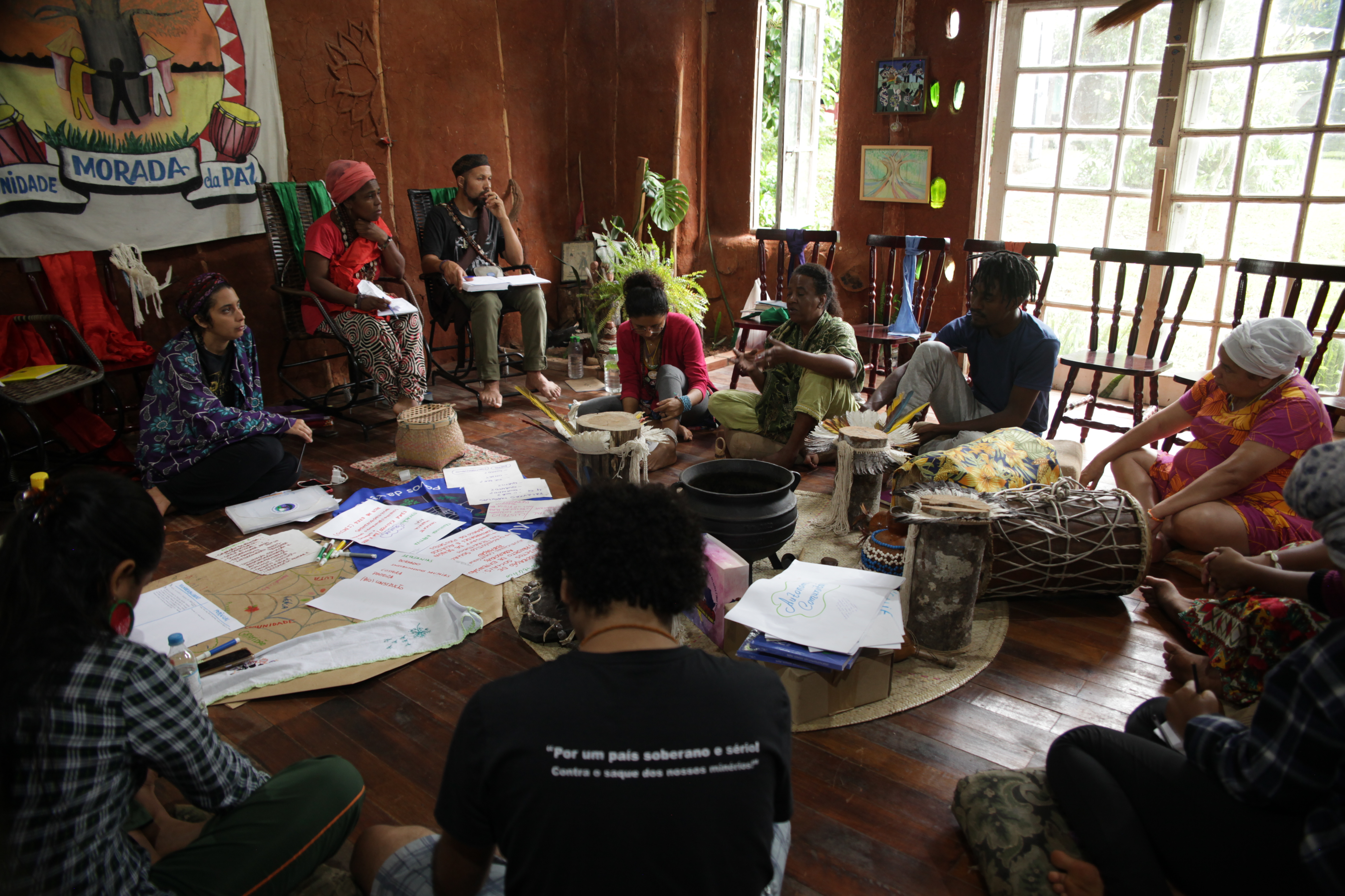 Das águas, da floresta, do asfalto, das encruzilhadas. De Roraima, de Manaus, do Pará, da Bahia, de Minas Gerais e do Rio Grande do Sul. Juventudes, ekogestores e guardiões das encruzilhadas, cruzando os céus, águas, florestas, contratempos, cansaços e lutas, chegaram no território kilombola Morada da Paz para uma sequência de atividades: