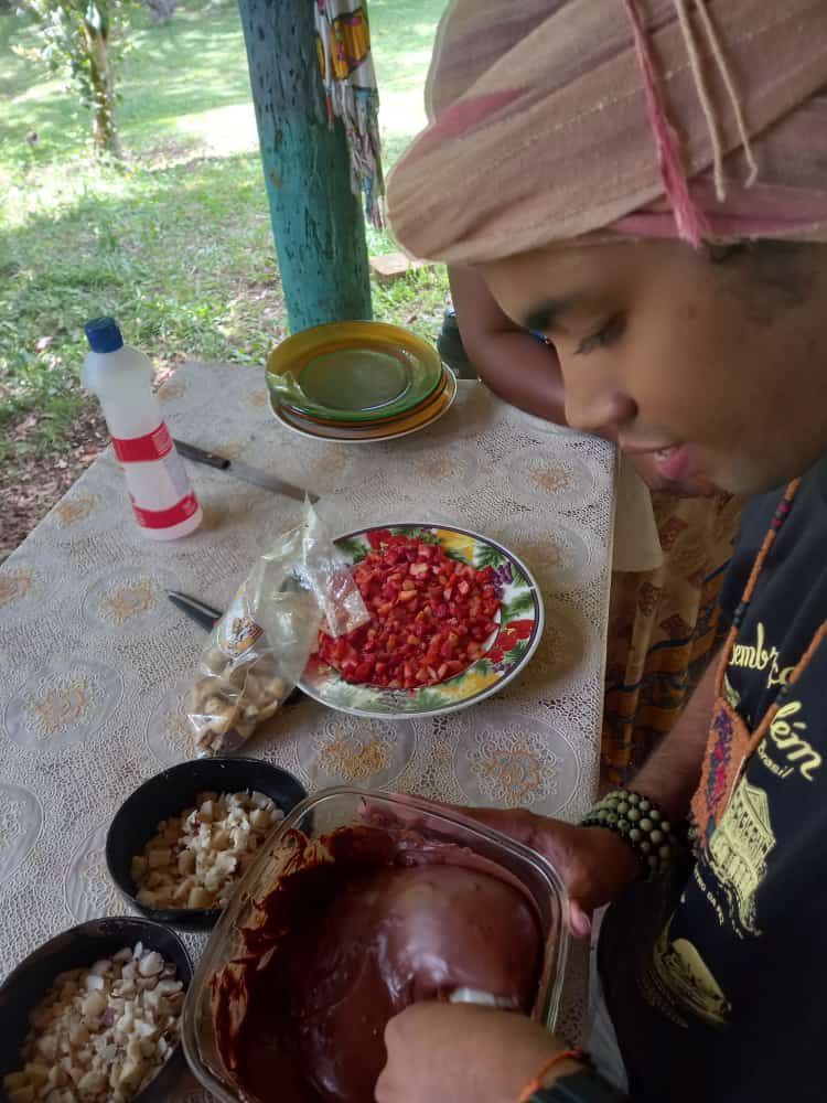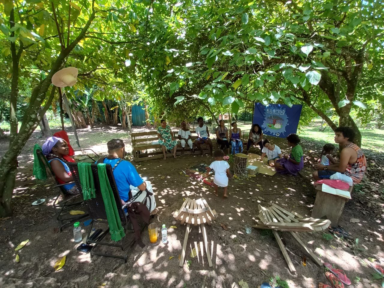Para alegrar adultos e crianças, o jovem Erik do território Nova Canaã, Barcarena-PA trouxe os saberes e sabores do chocolate orgânico de sua comunidade. Uma tarde mais do que bonita na choupana Baobá, o fogo à lenha acendeu para derreter os chocolates, as juventudes, mulheres e crianças empenharam-se para cortar as frutas, recheio do bombom de chocolate. Na ausência de forma para feitura das barras de chocolates, Makota Cássia Kidoialê, do quilombo do Manzo, trouxe a ideia de fazer o chocolate na folha de bananeira. Erik destacou que o chocolate da comunidade recebe o nome de sua avó Abel de 103 anos, anciã e mestra da comunidade.